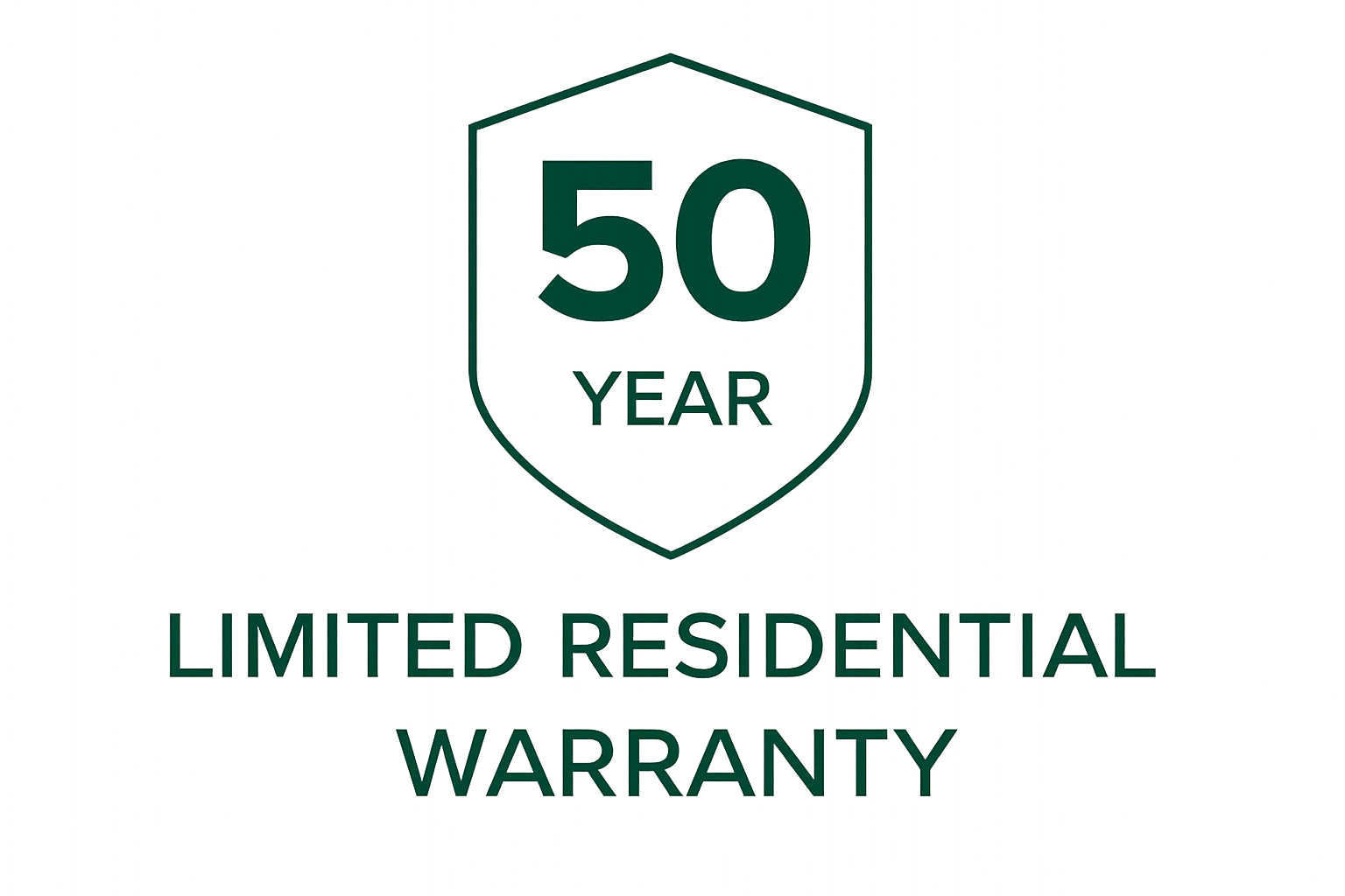 Limited Lifetime Product Warranty, 50 Year Limited Fade & Stain Warranty